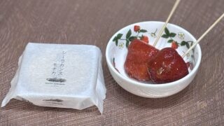 お土産にもらったシーラカンスもなかと、はじめて作ったいちご飴。やさしい甘さと、少しの達成感。なんでもない一日の中にあった、小さな幸せの記録。