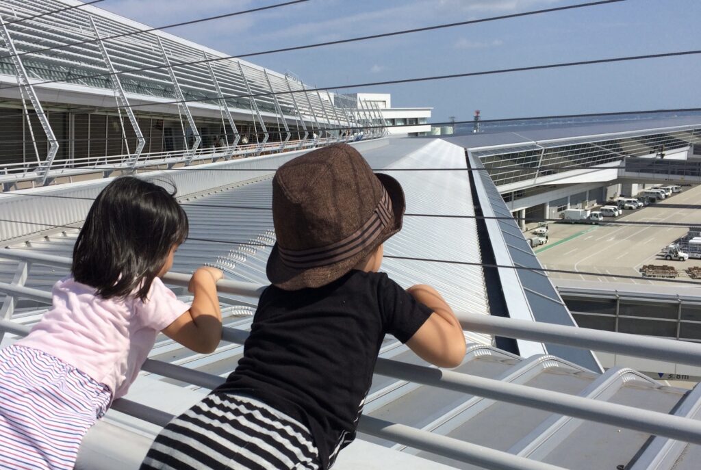 展望の場所から見える飛行機が行ったり来たりするたびに、子どもたちは何度も身を乗り出すように眺めていました。